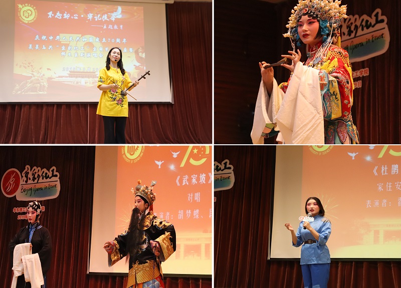 9月29日晚437bwin必赢国际官网在奉贤校区敬贤堂举办美美与共“京彩化工”京胡艺术讲座暨师生京剧演唱会,以一场传统文化盛宴为祖国70华诞庆生。上海京剧院国家一级琴师周晓铭受邀带来精彩的京胡艺术讲座。闵行区政协委员、闵行区京剧票友协会会长余剑强,党委副书记高艺霞,校工会京剧社社长李廷雨、学院全体本科生辅导员及300余名学生参加了本次活动。